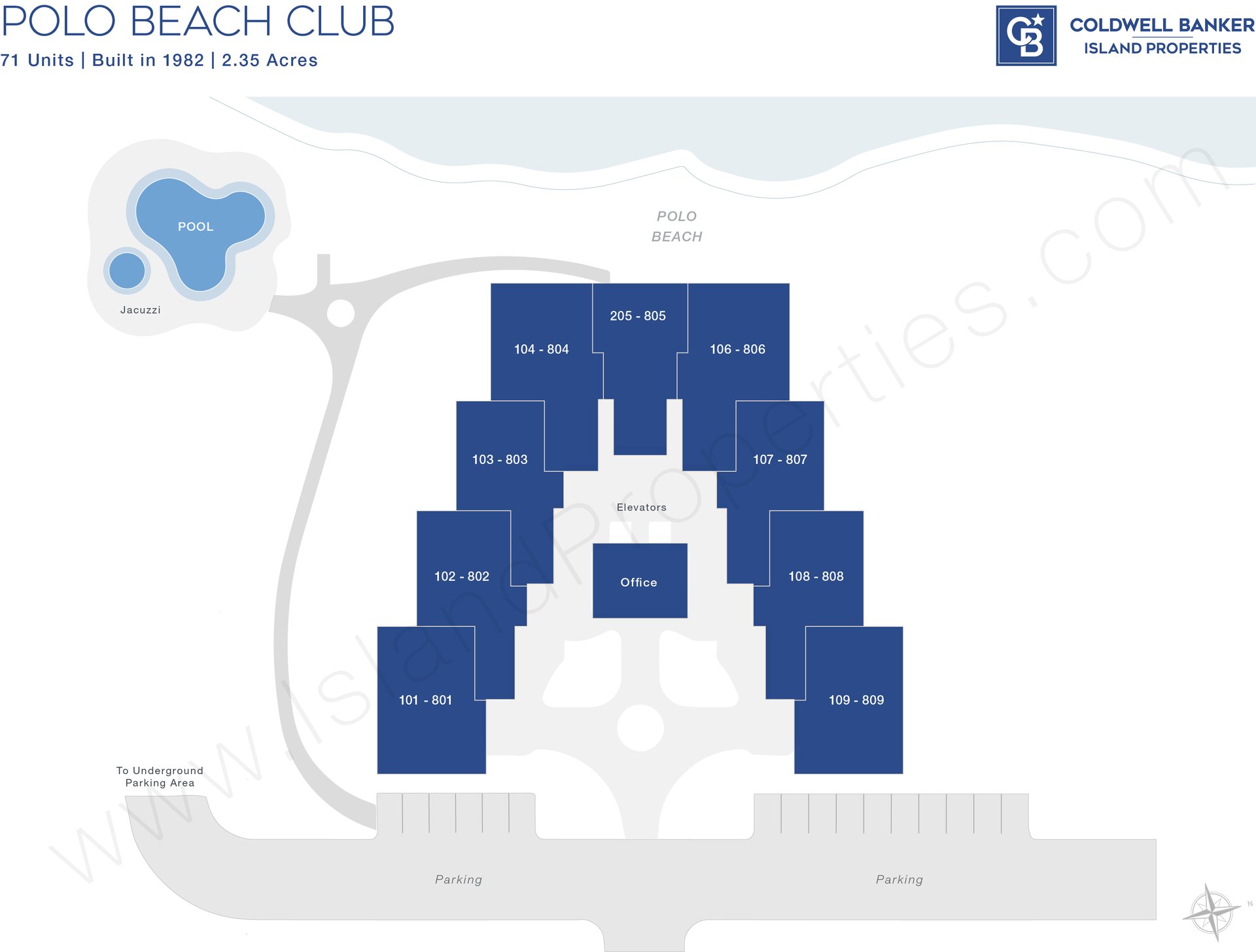 Built in 1982 and meticulously maintained, Polo Beach Club is a low-density, beachfront condominium consisting of just 71 two-bedroom residences spread across eight floors. The architecture is classic and clean, with most units offering direct, unobstructed ocean views from private lanais. The "04/05/06" stacks are the premier units, situated at the front of the building and commanding a significant premium.